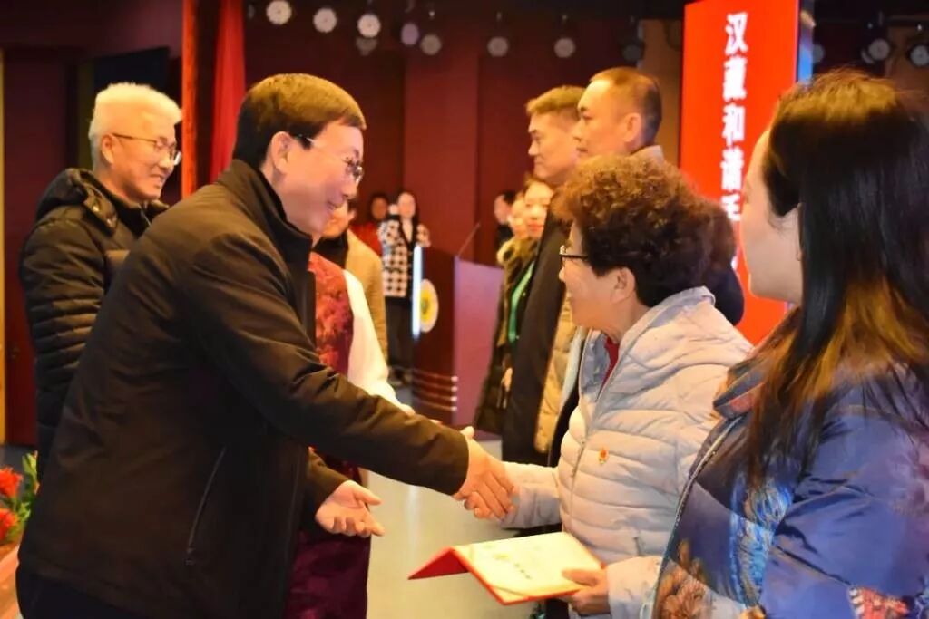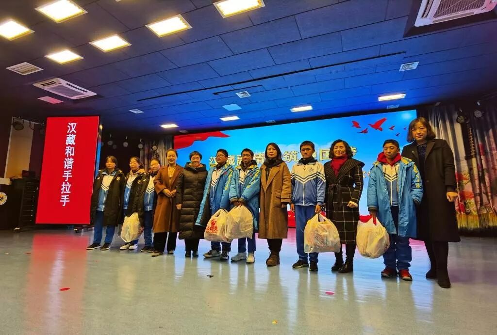 市委统战部副部长杜世崇为共建共育单位颁发了证书,市教育局副局长姜正涛为汉藏一家亲活动先进集体颁赠了锦旗,校领导班子为汉藏一家亲活动的先进个人颁发了证书。