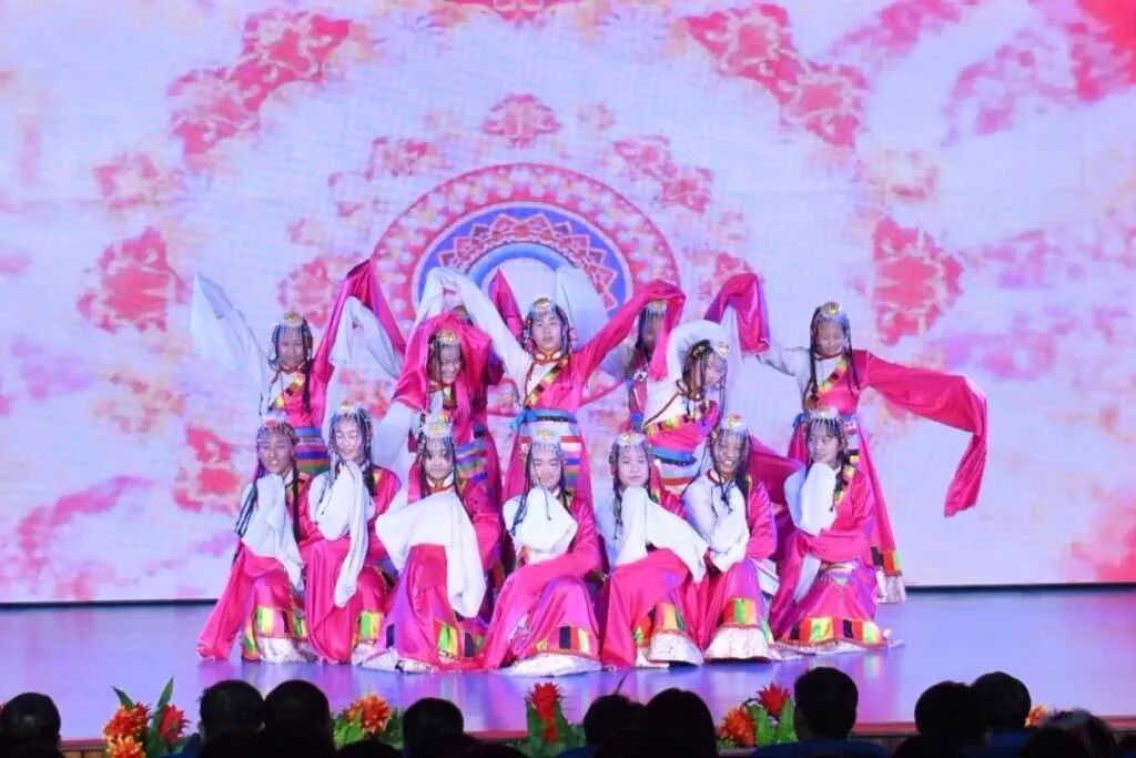 在迎新春联欢会上,舞蹈、歌曲、藏戏等8个具有浓浓藏族特色的文艺节目,浩然正气、激情昂扬、轻快优雅、活泼动感,一次次赢得阵阵掌声,联欢会现场充满了欢声笑语,气氛温馨浪漫。联欢会在舞蹈《天路上的格桑花》中圆满落幕。